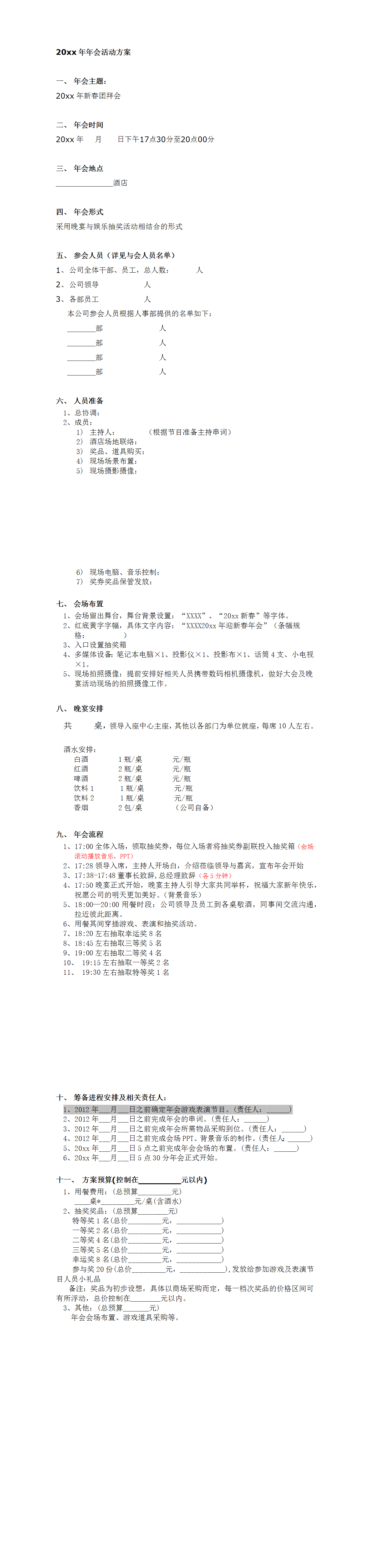 上一篇:【年会策划方案】年会工作流程.doc 下一篇:【年会策划方案】年会聚餐组织及安全要求等.xlsx
