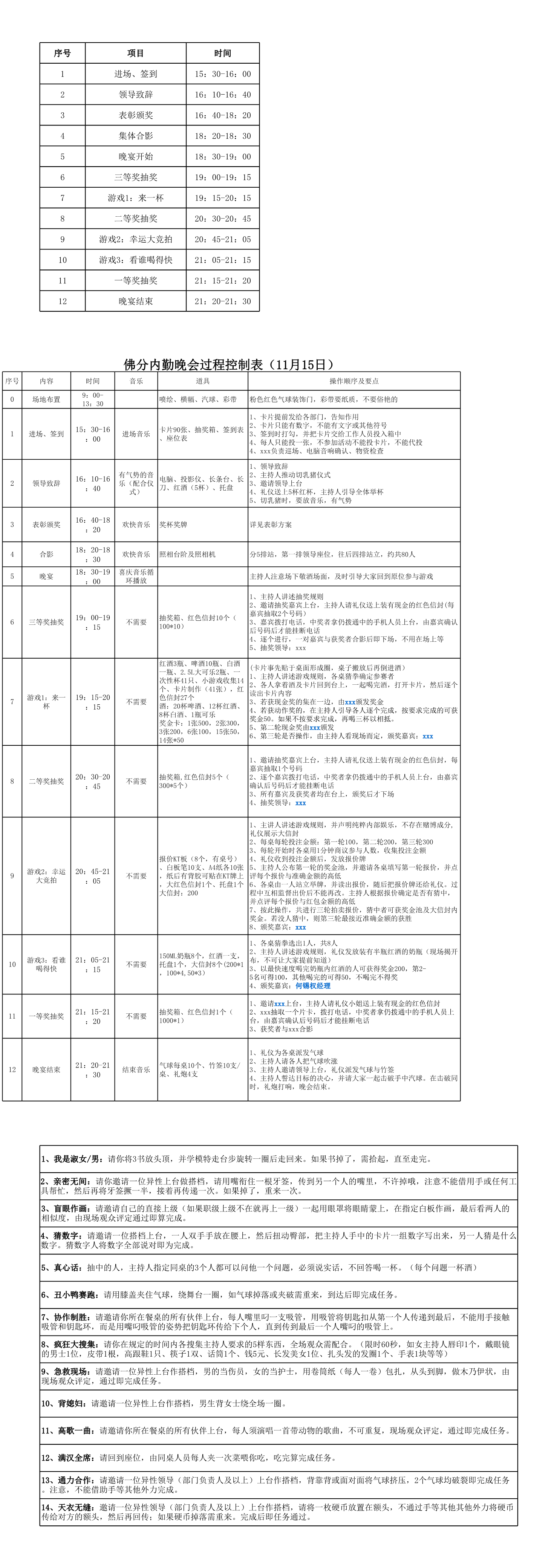 声明:本信息来源于【年会策划方案】晚会活动过程控制表.xls,仅用于学习和技术交流,如有侵权或其他问题,请联系本站处理。