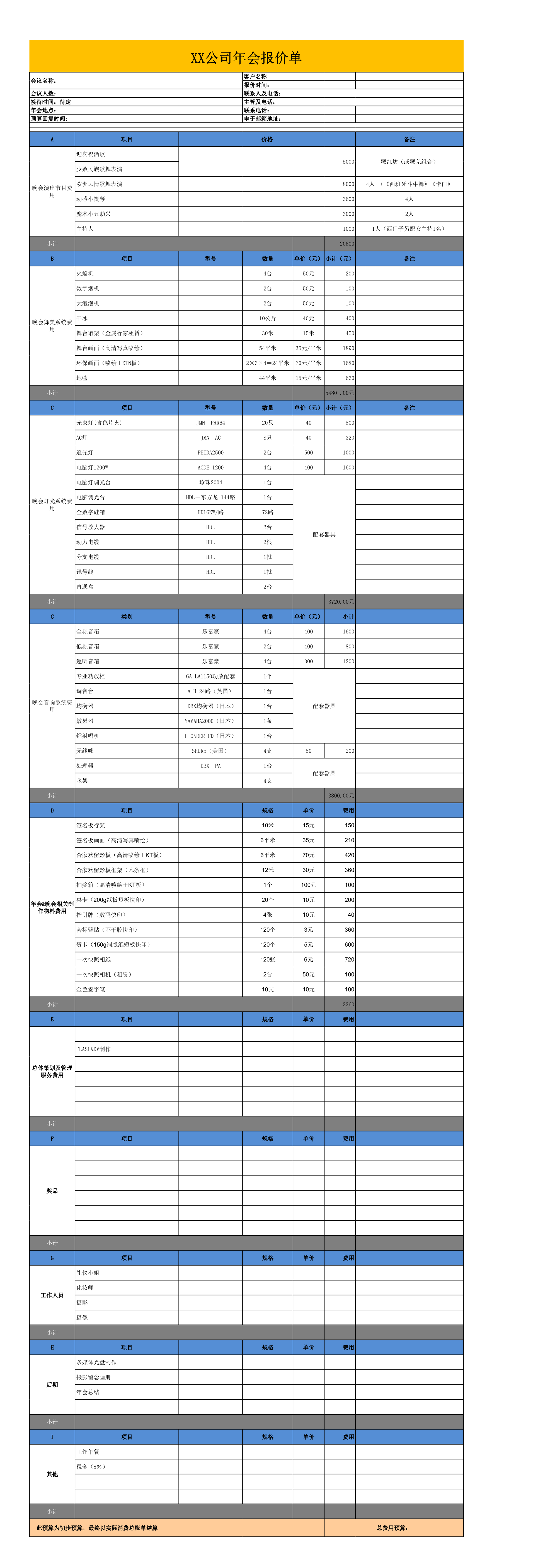 声明:本信息来源于【年会费用预算表】XX公司年会活动报价单.xls,仅用于学习和技术交流,如有侵权或其他问题,请联系本站处理。