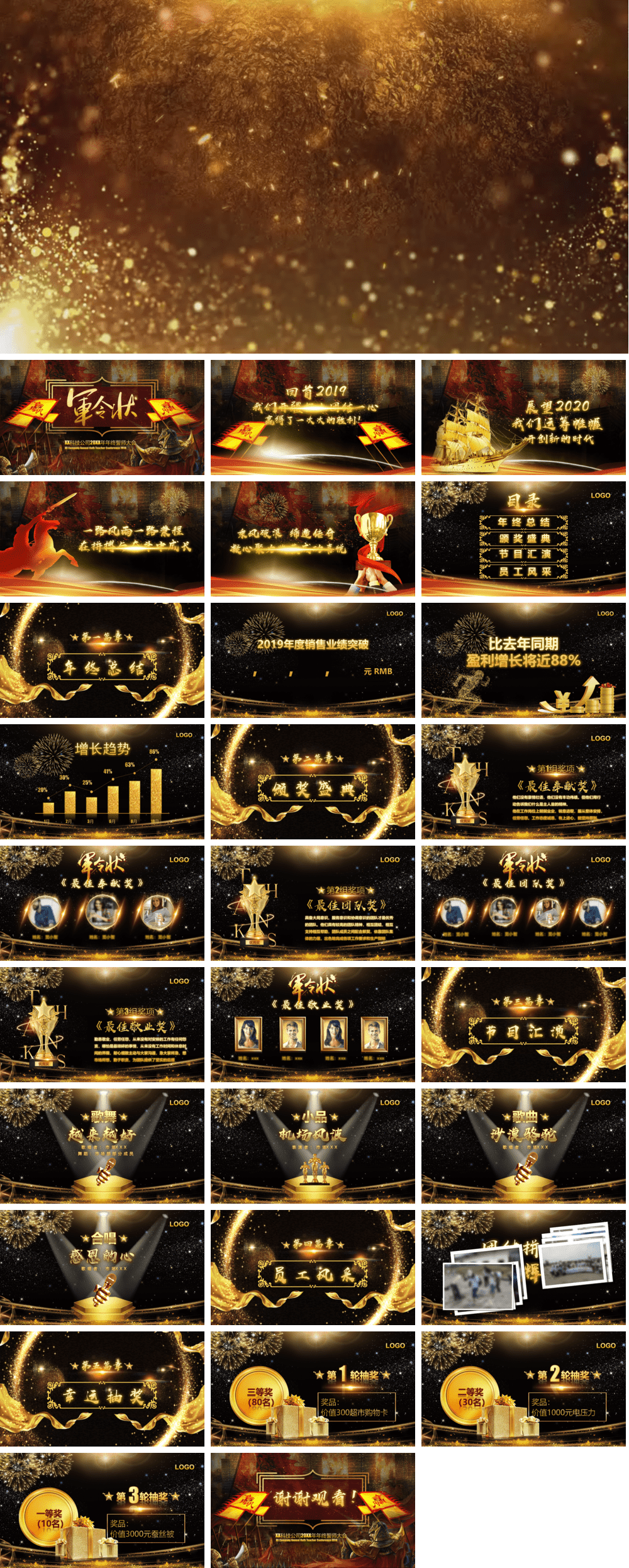 请注意,年会颁奖视频PPT文件都很大,少则30~50MB,多则300MB,尽量在电脑上预览效果图以及下载PPT源文件。