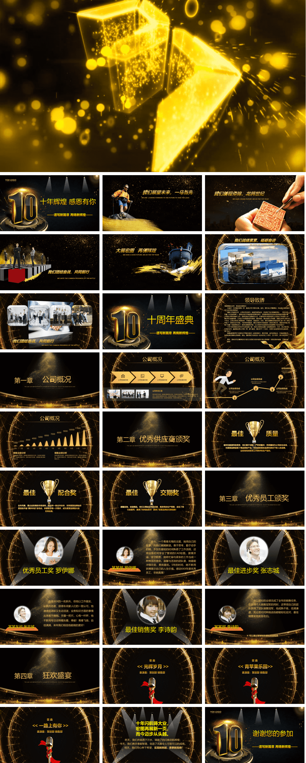 请注意,年会颁奖视频PPT文件都很大,少则30~50MB,多则300MB,尽量在电脑上预览效果图以及下载PPT源文件。