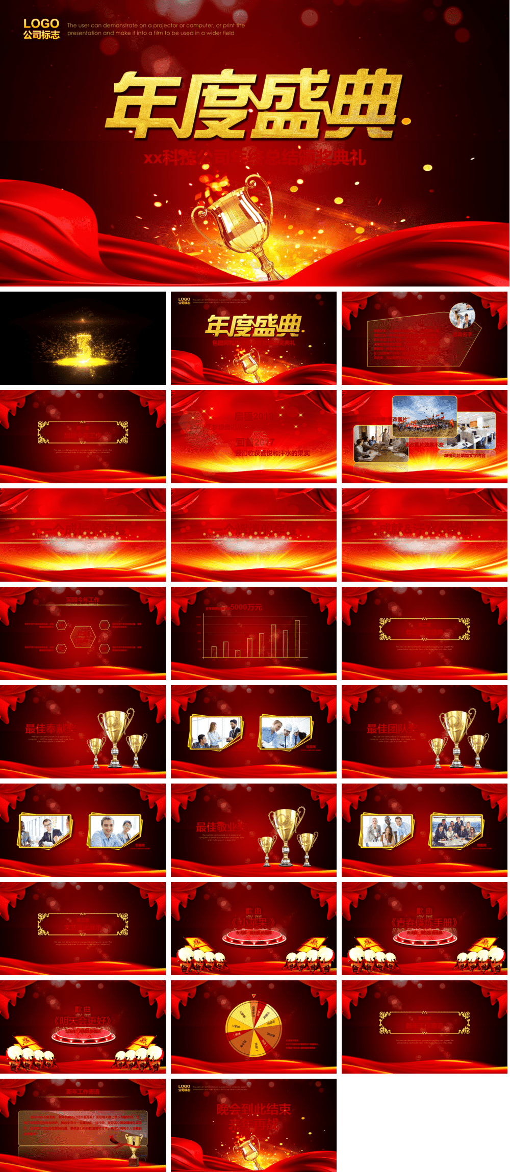 请注意,年会颁奖视频PPT文件都很大,少则30~50MB,多则300MB,尽量在电脑上预览效果图以及下载PPT源文件。