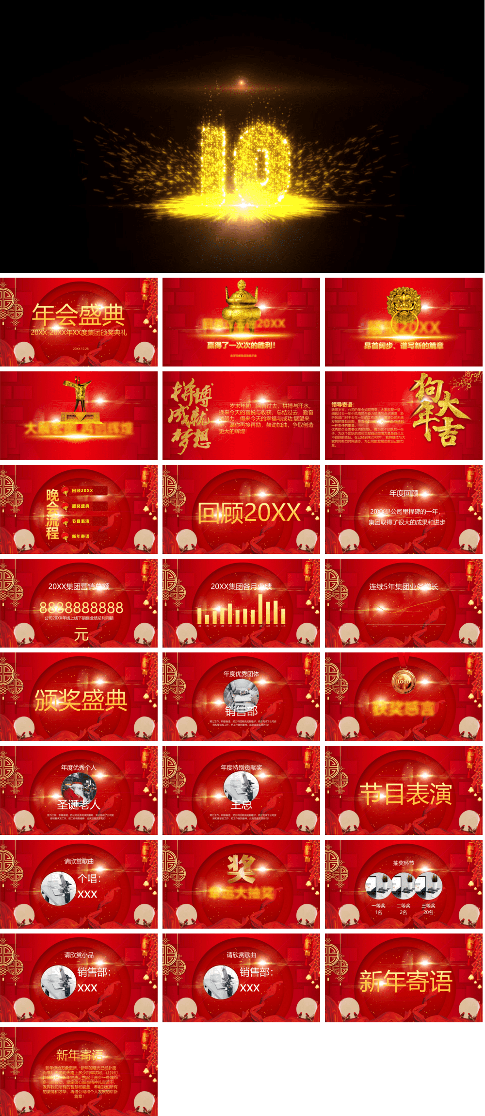 请注意,年会颁奖视频PPT文件都很大,少则30~50MB,多则300MB,尽量在电脑上预览效果图以及下载PPT源文件。