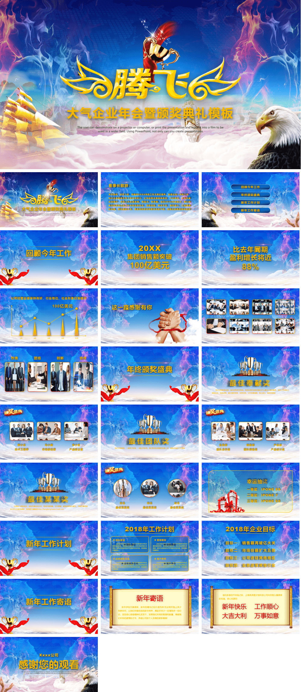 请注意,年会颁奖视频PPT文件都很大,少则30~50MB,多则300MB,尽量在电脑上预览效果图以及下载PPT源文件。