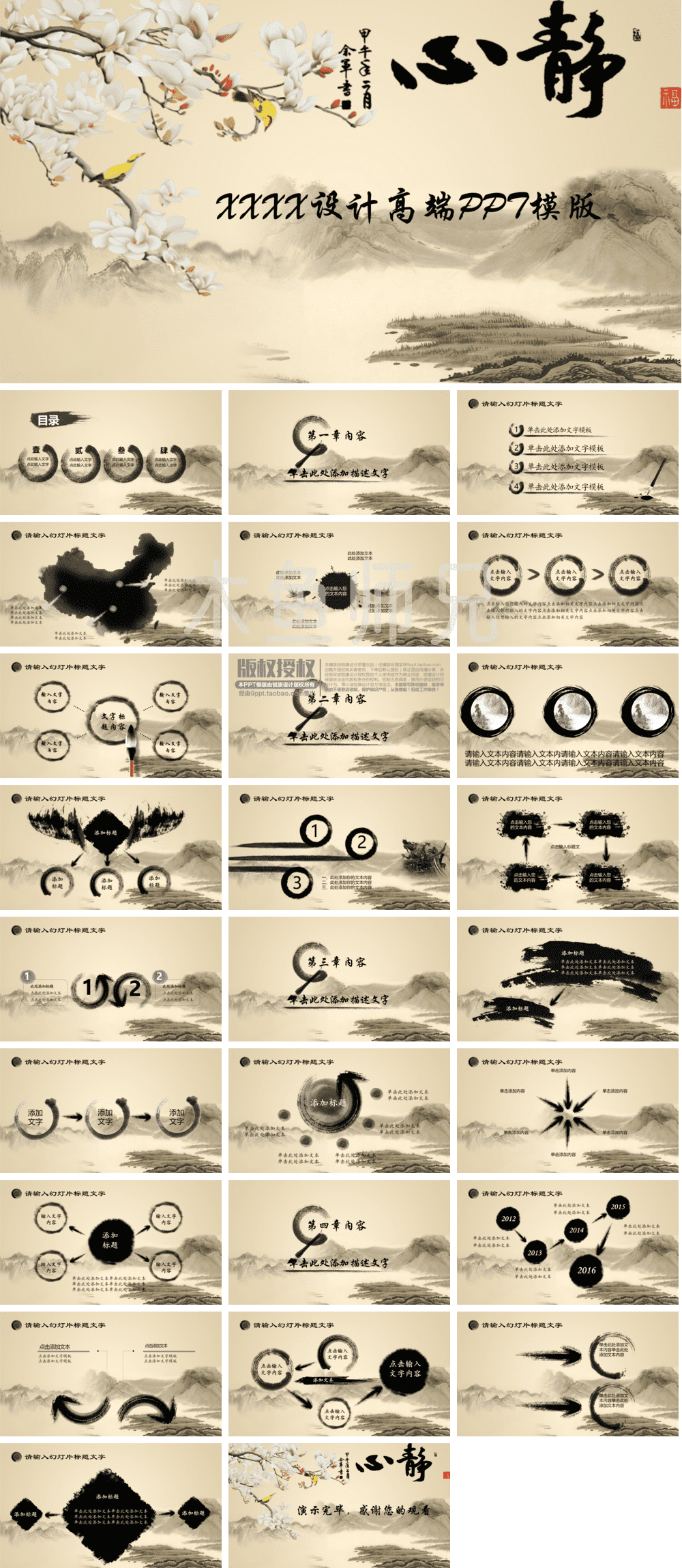 合集:中国风_国风_古典风格PPT模板100份