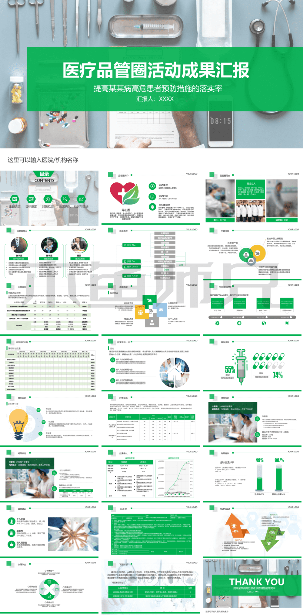 合集:PDCA品管圈QCPPT模板-73套(偏医院里的内容)