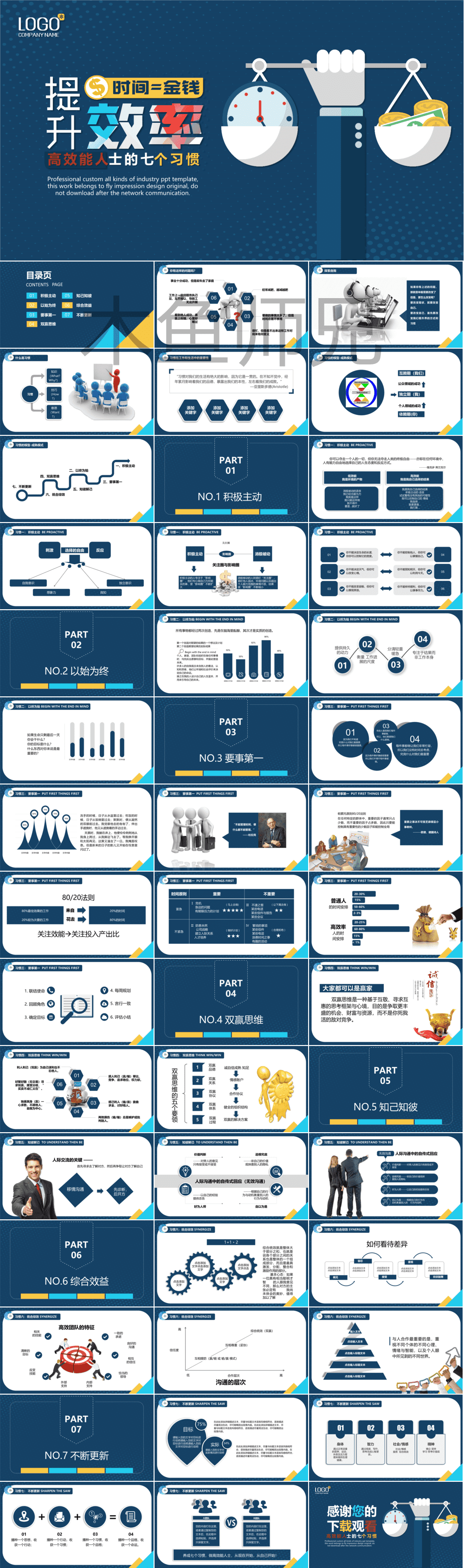 合集:13套高效能人士的7个习惯PPT模板