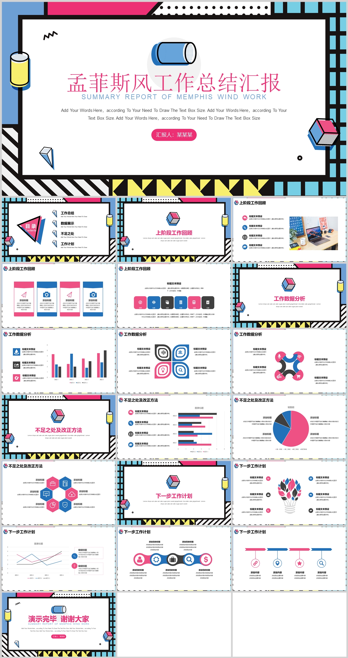 粉蓝孟菲斯风工作汇报模板