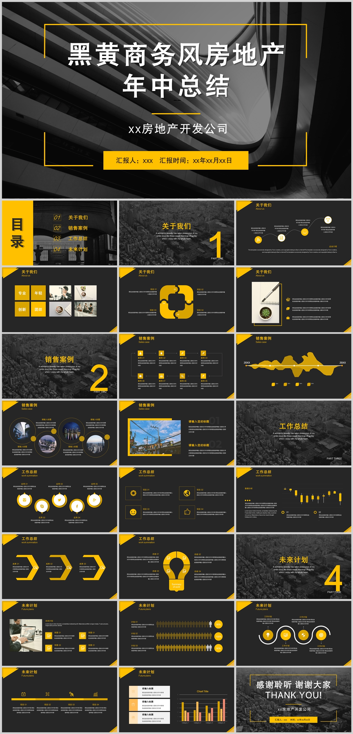 黑黄商务风房地产年中总结