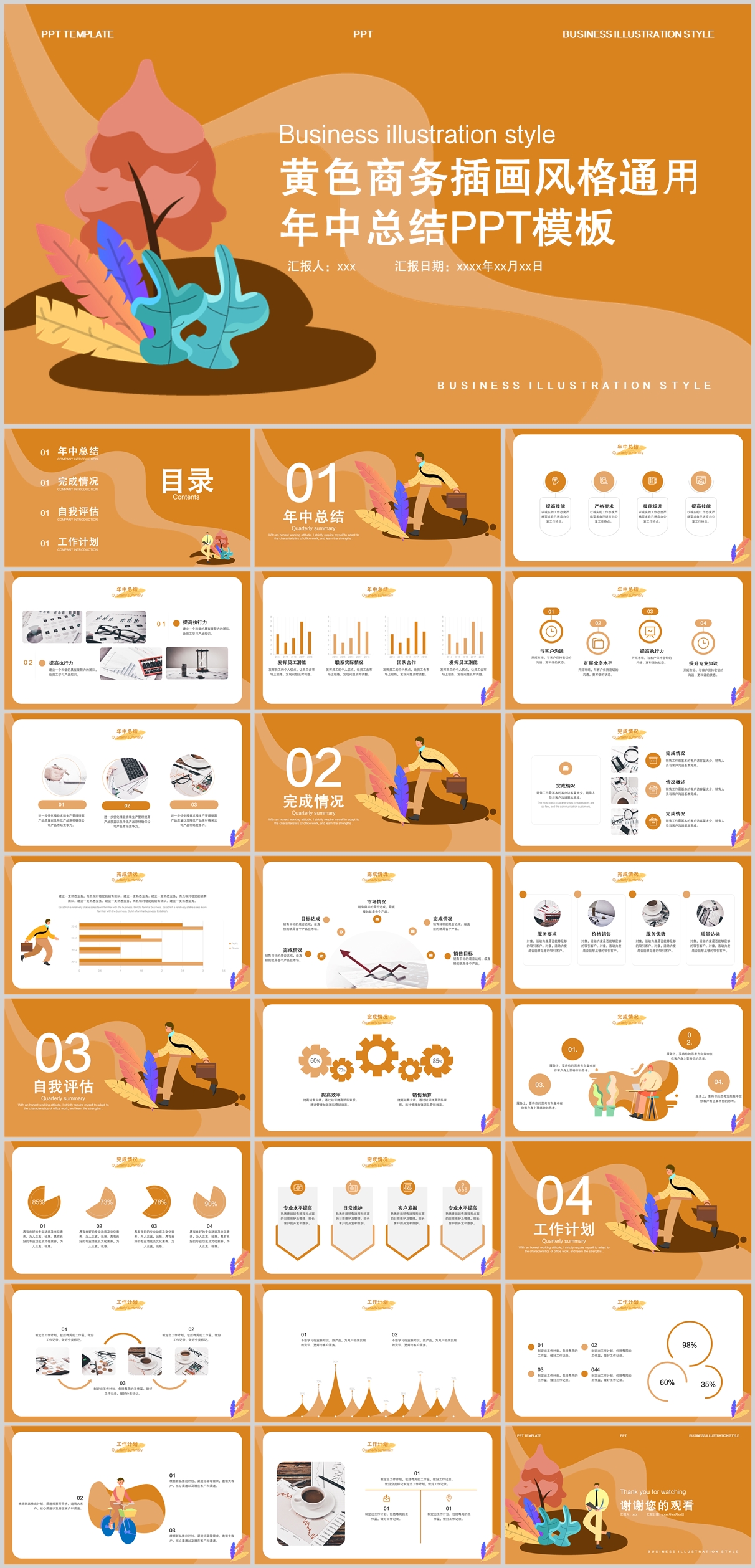 黄色商务插画风通用年中总结