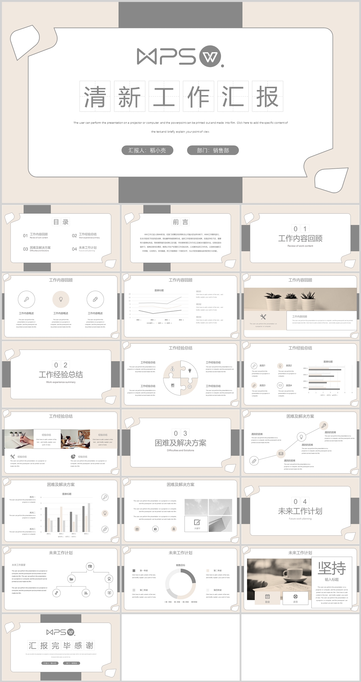 灰色撕纸创意清新工作汇报通用模板