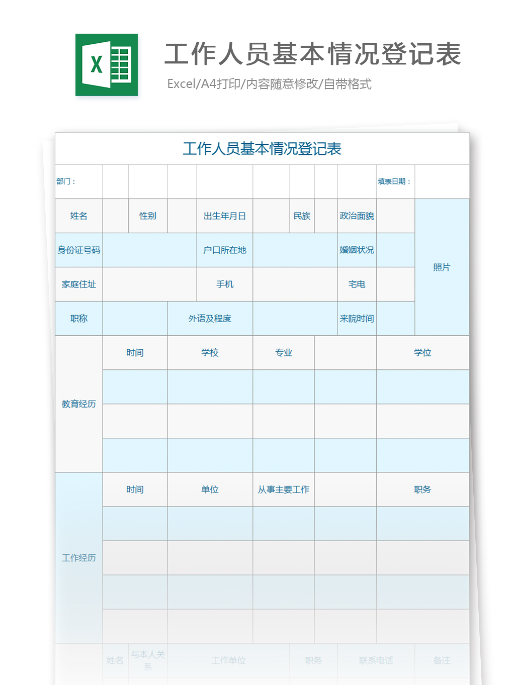 18、人事档案表A160版
