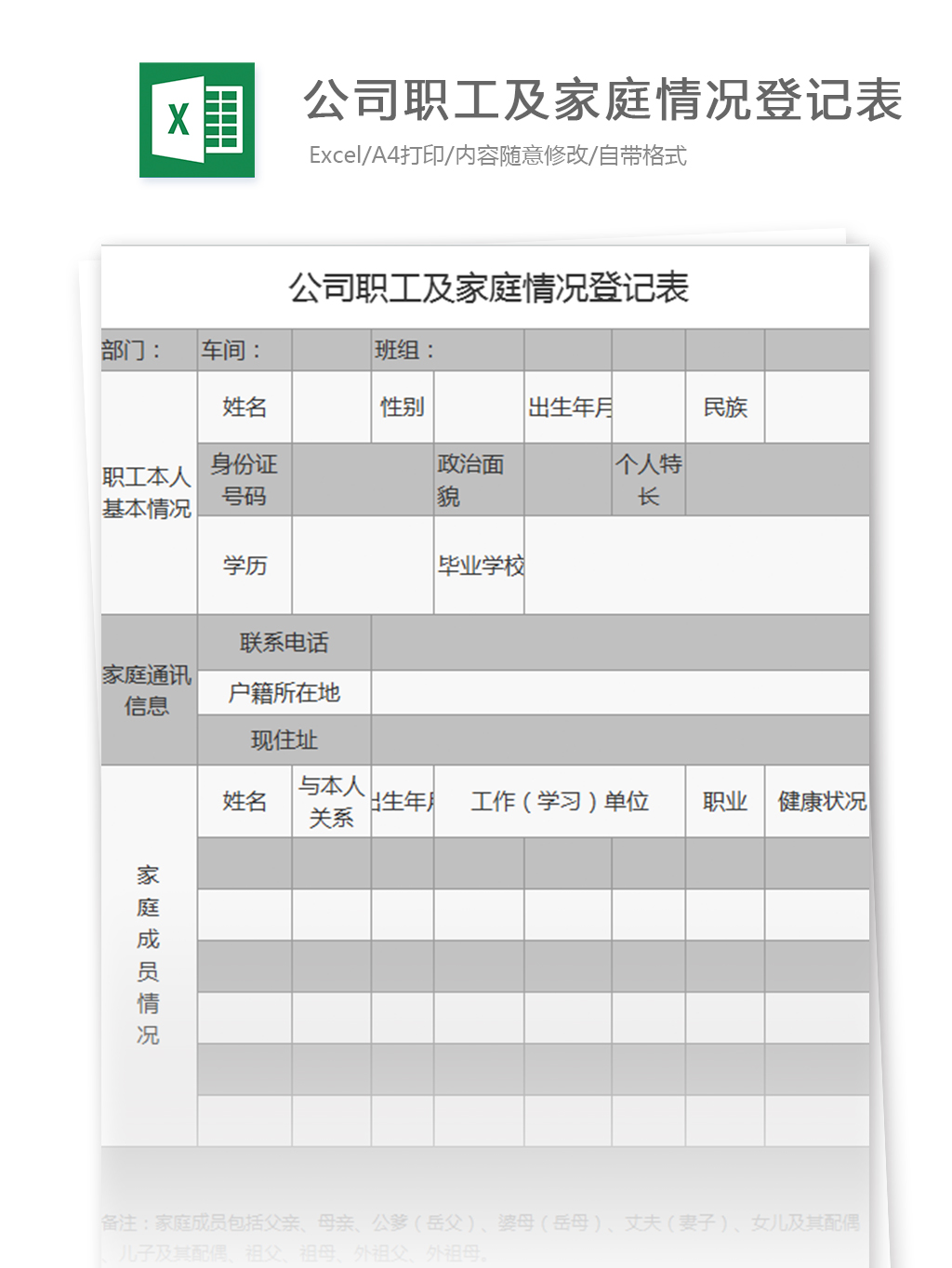 9、公司职工及家庭情况登记表