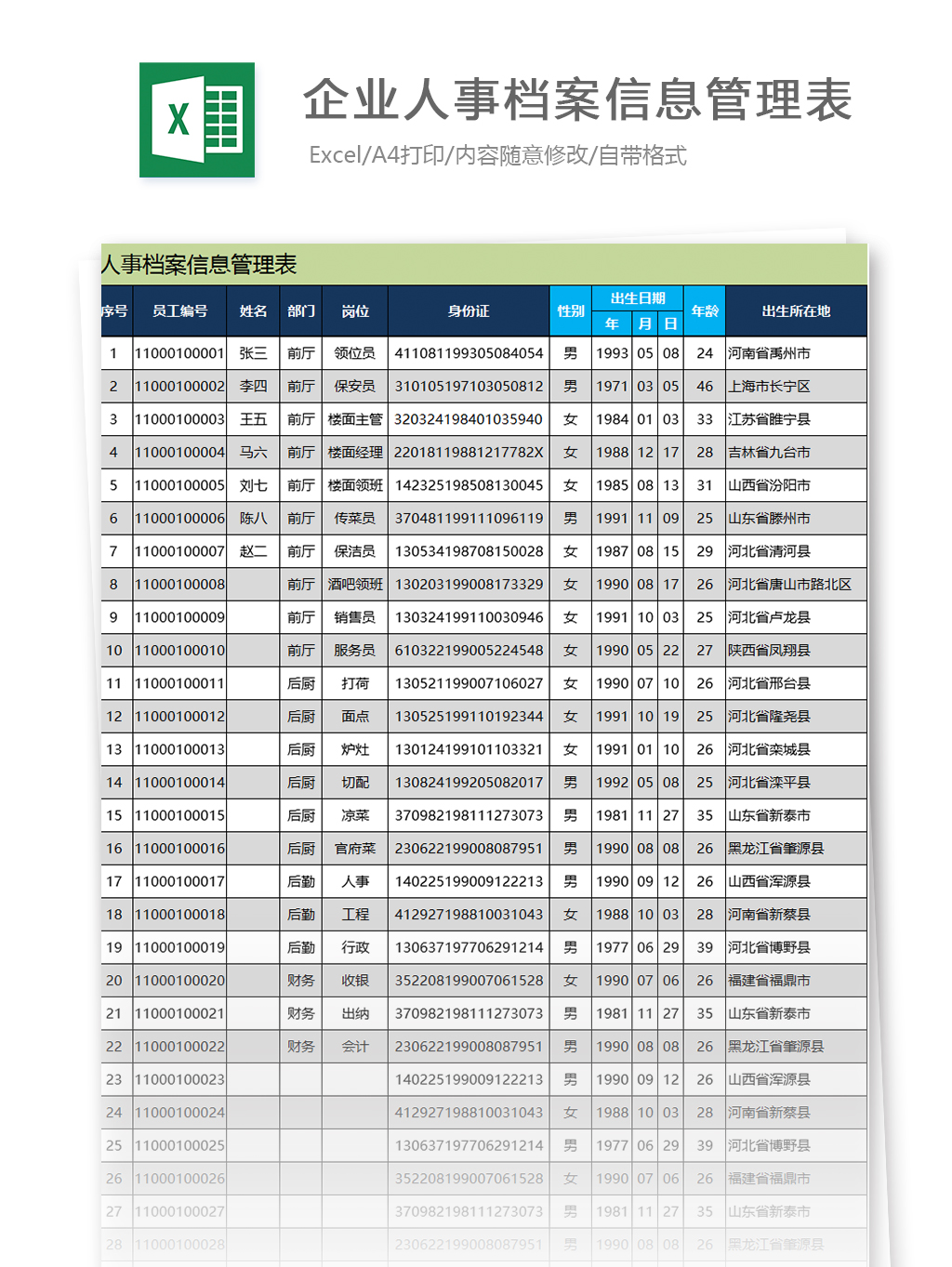 合集:Excel模板大全-140份人事常用模板