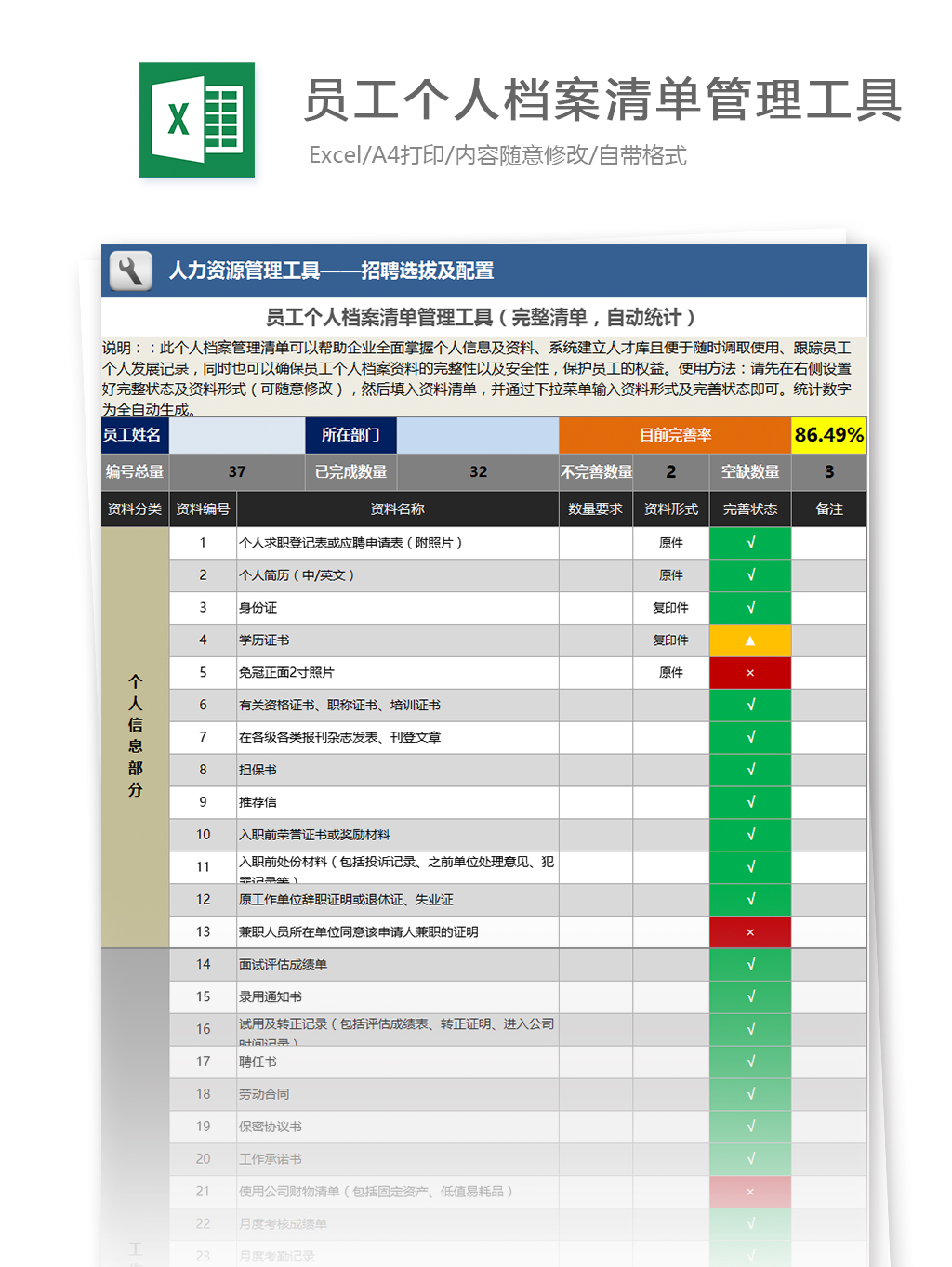 30、员工个人档案清单管理工具