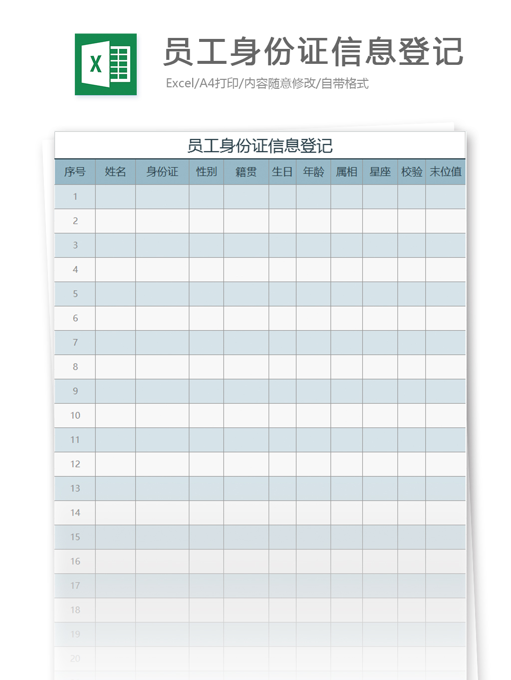 1.认识常用excel模板-档案类(35份)