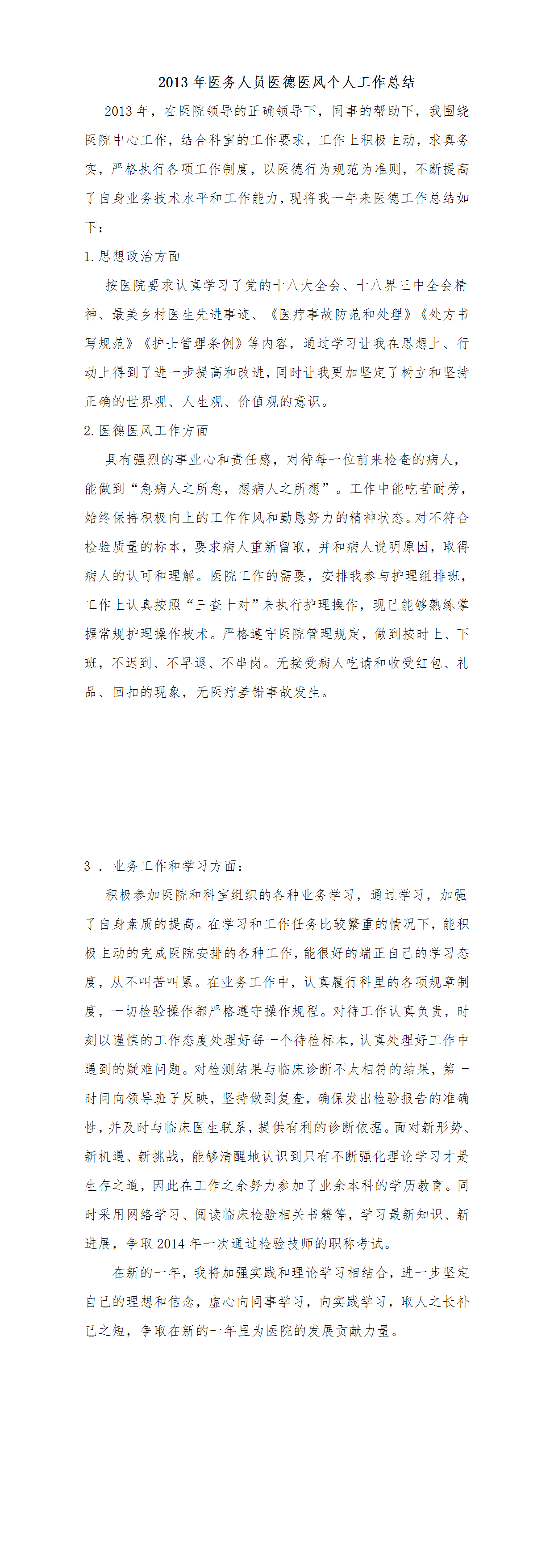 资料来源:2013年医务人员医德医风个人工作总结.doc