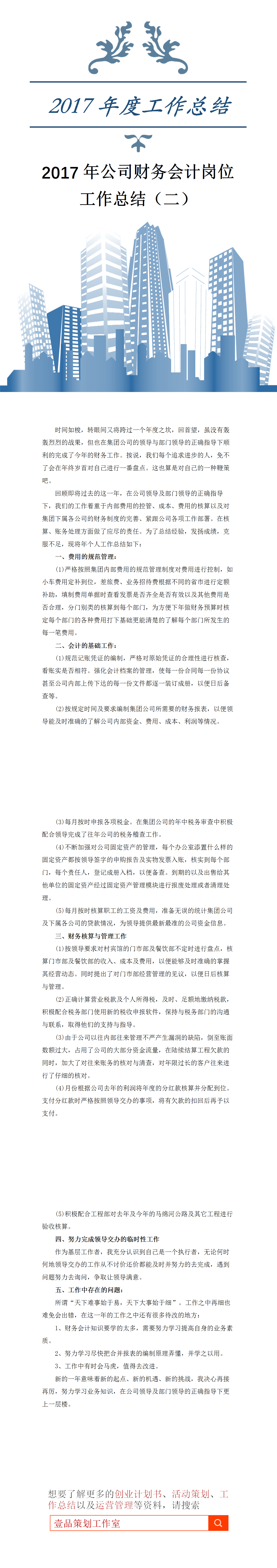资料来源:2017年公司财务会计岗位工作总结(二).docx