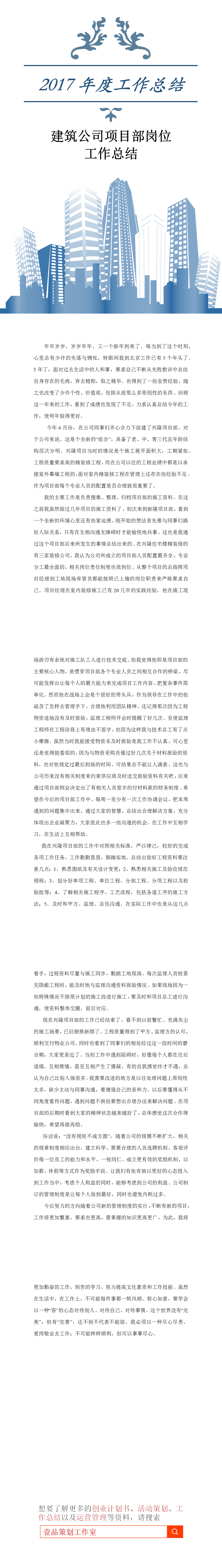 资料来源:2017年建筑公司项目部岗位工作总结.docx