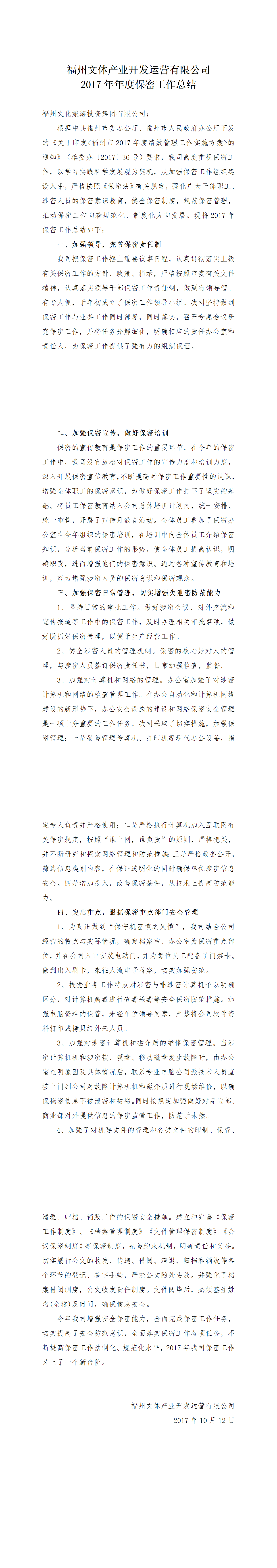 资料来源:2017年年度保密工作总结.docx