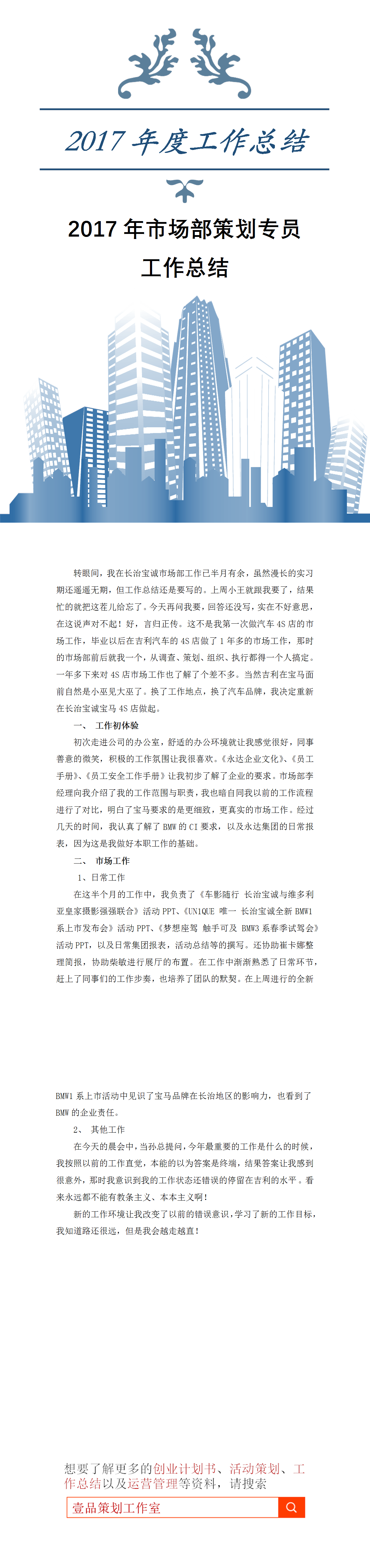 资料来源:2017年市场部策划专员工作总结.docx