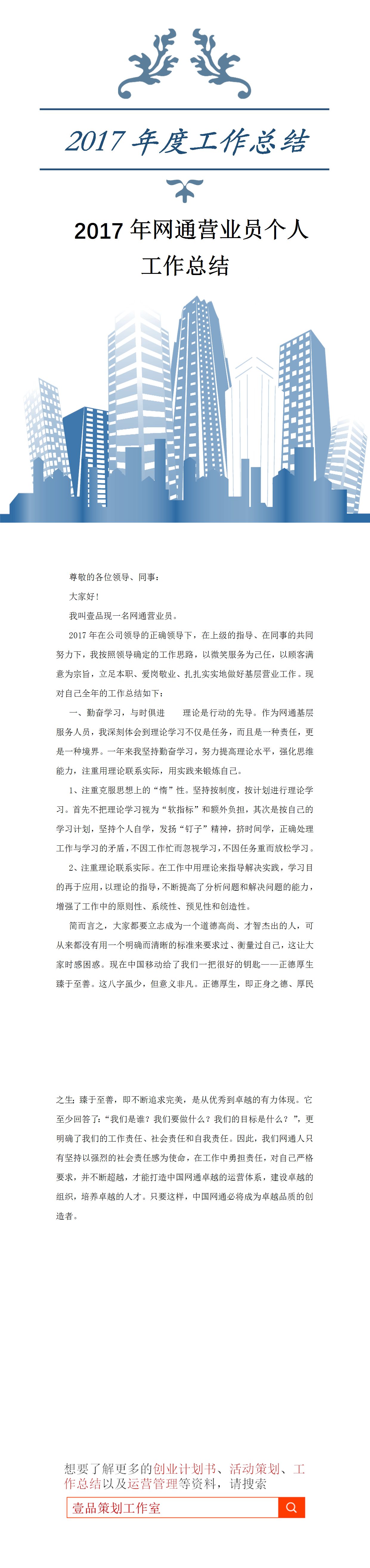 资料来源:2017年网通营业员个人工作总结.docx