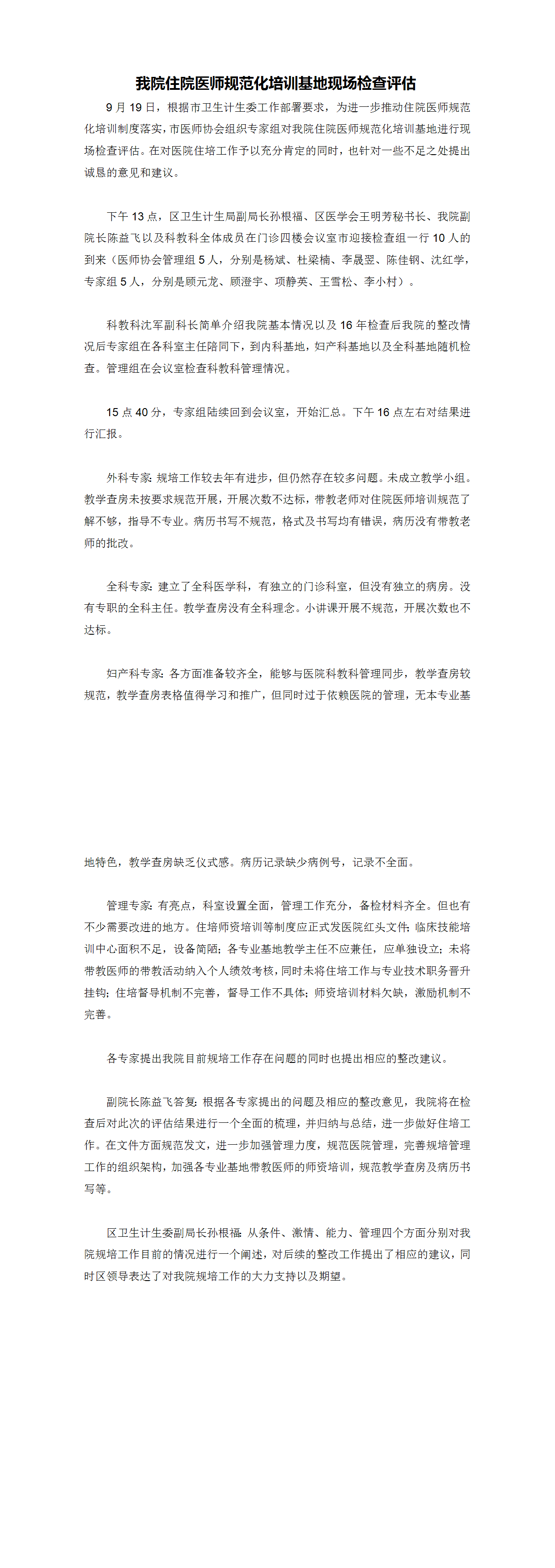 2017年住院医师规范化培训基地现场检查评估总结.docx
