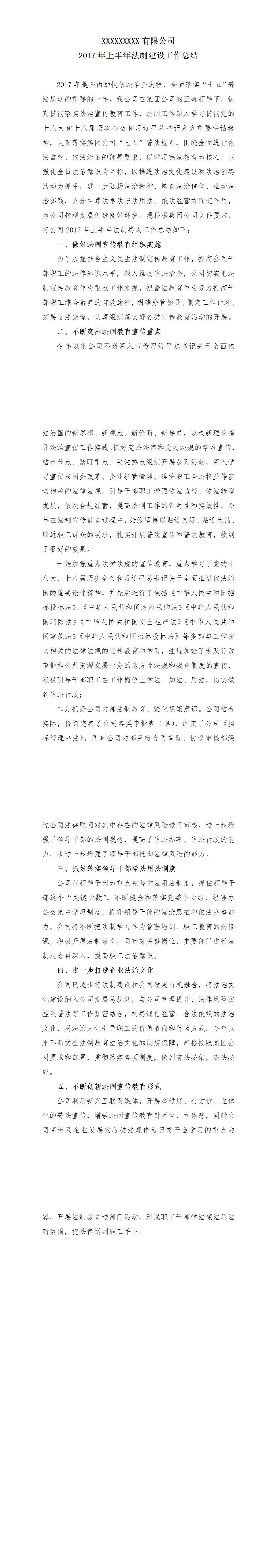资料来源:公司2017年上半年法制建设工作总结.doc