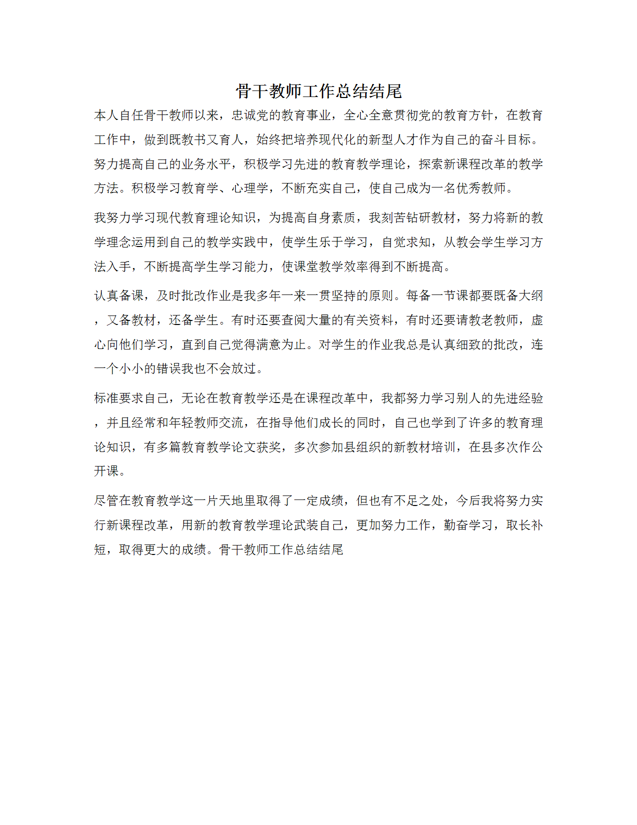 资料来源:骨干教师工作总结结尾(.doc