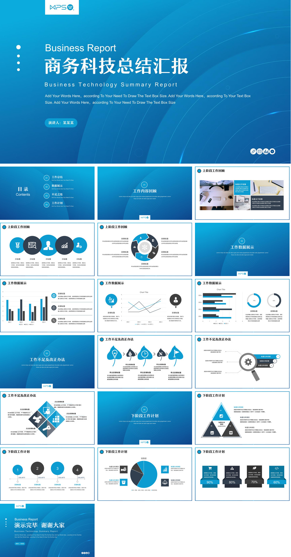 扁平科技风工作汇报模板