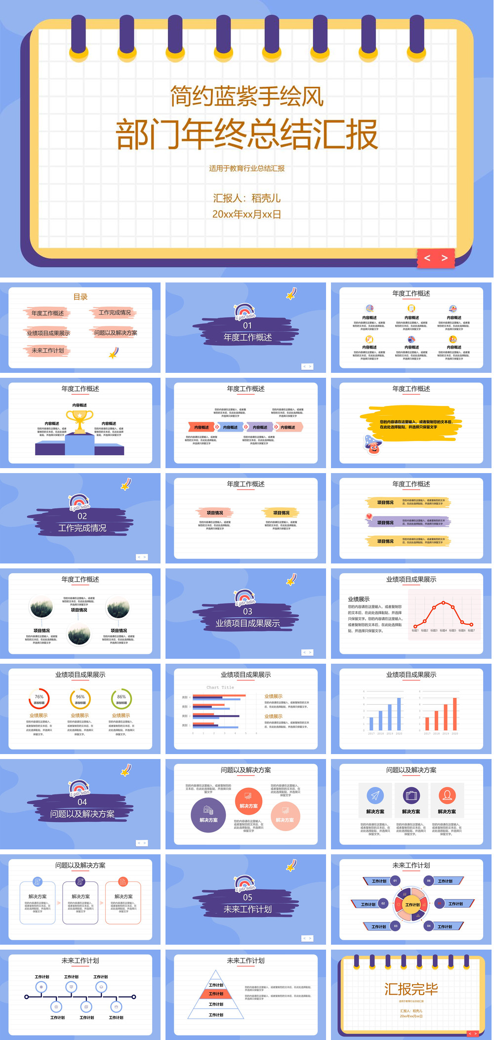 简约蓝紫手绘风教育行业部门年终总结.pptx