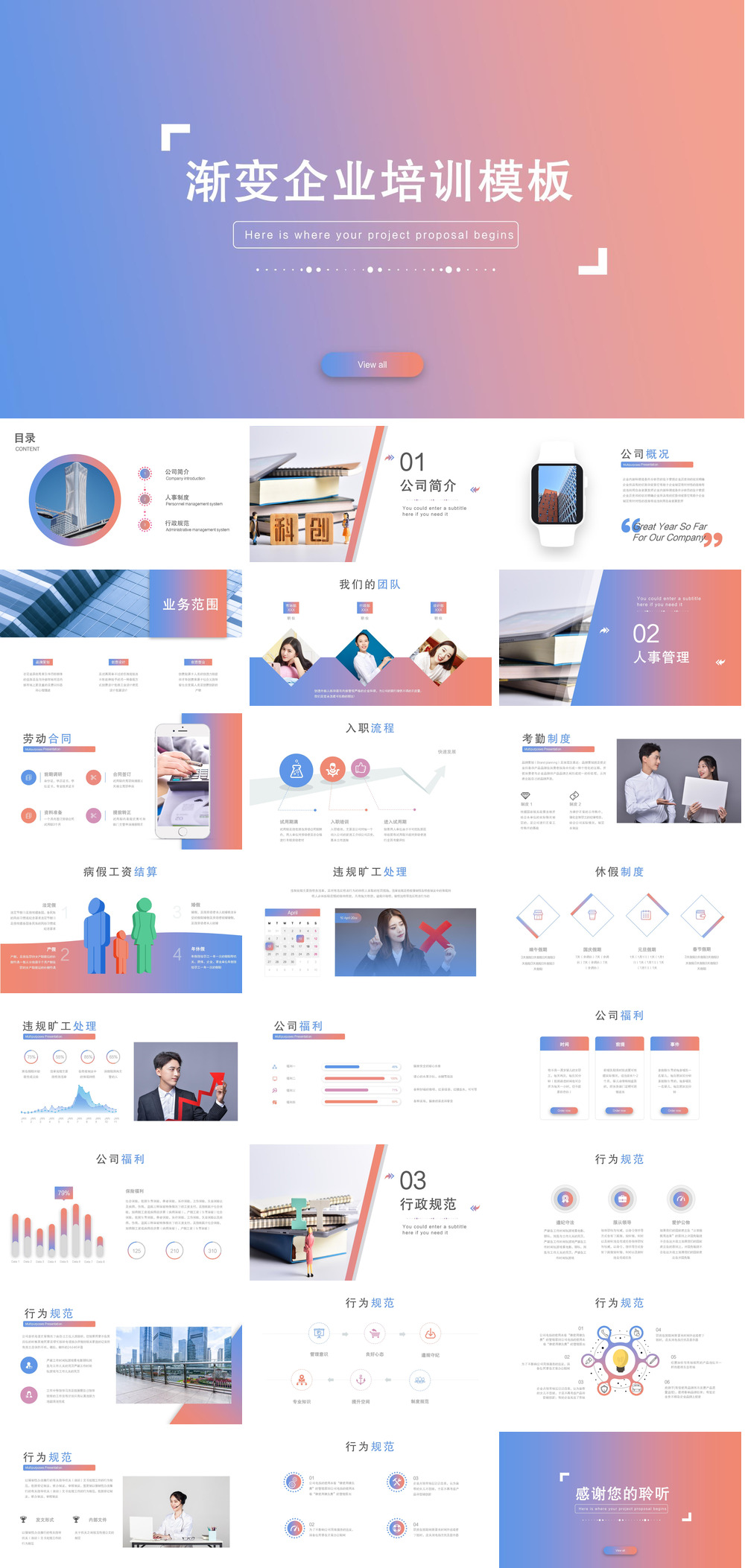 扁平风时尚渐变企业宣传PPT