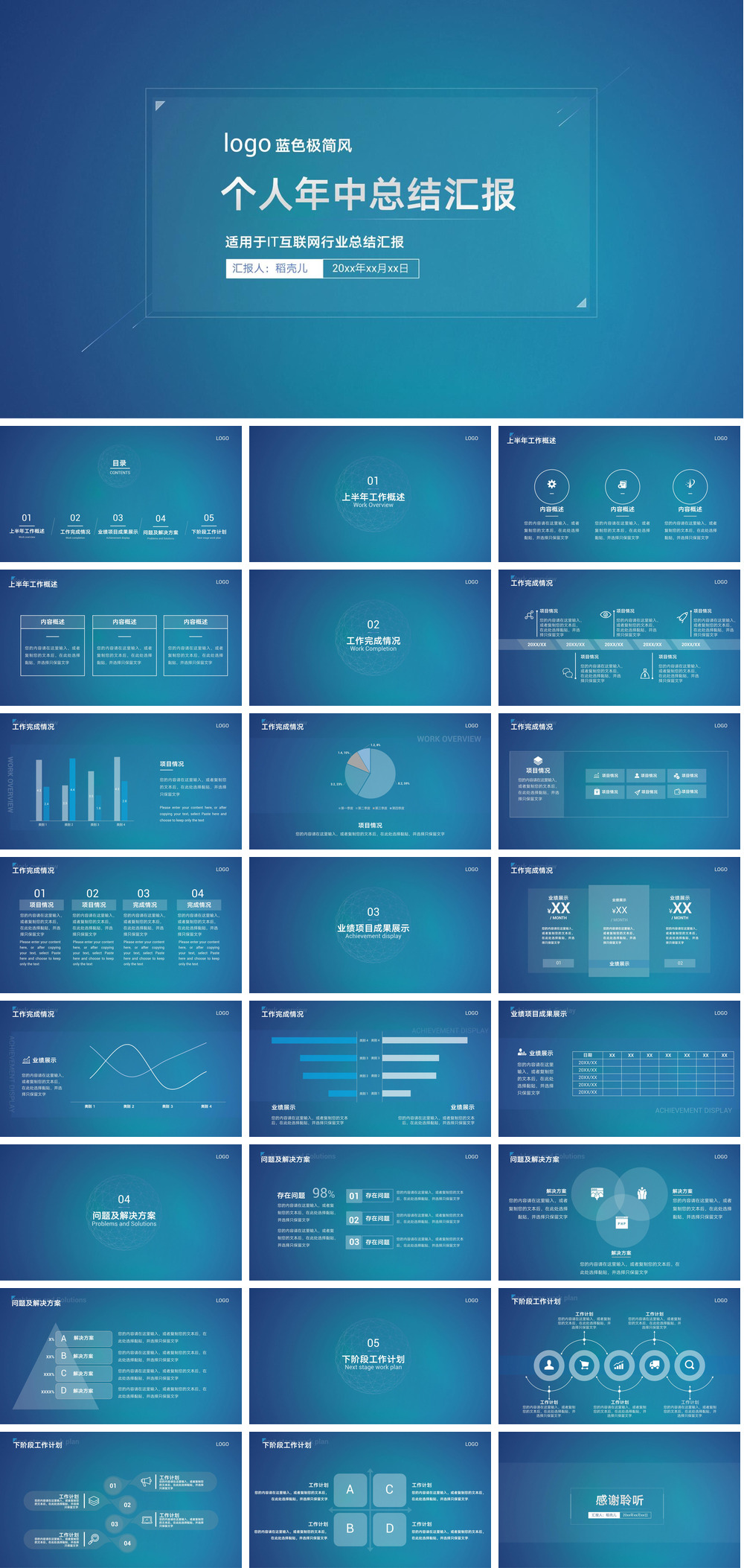 蓝色极简风IT互联网个人年中总结.pptx