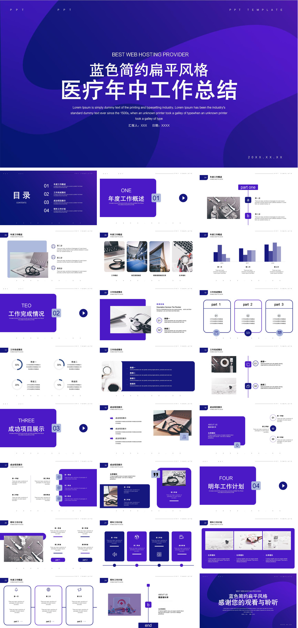 蓝色简约扁平风格医疗年中总结.pptx