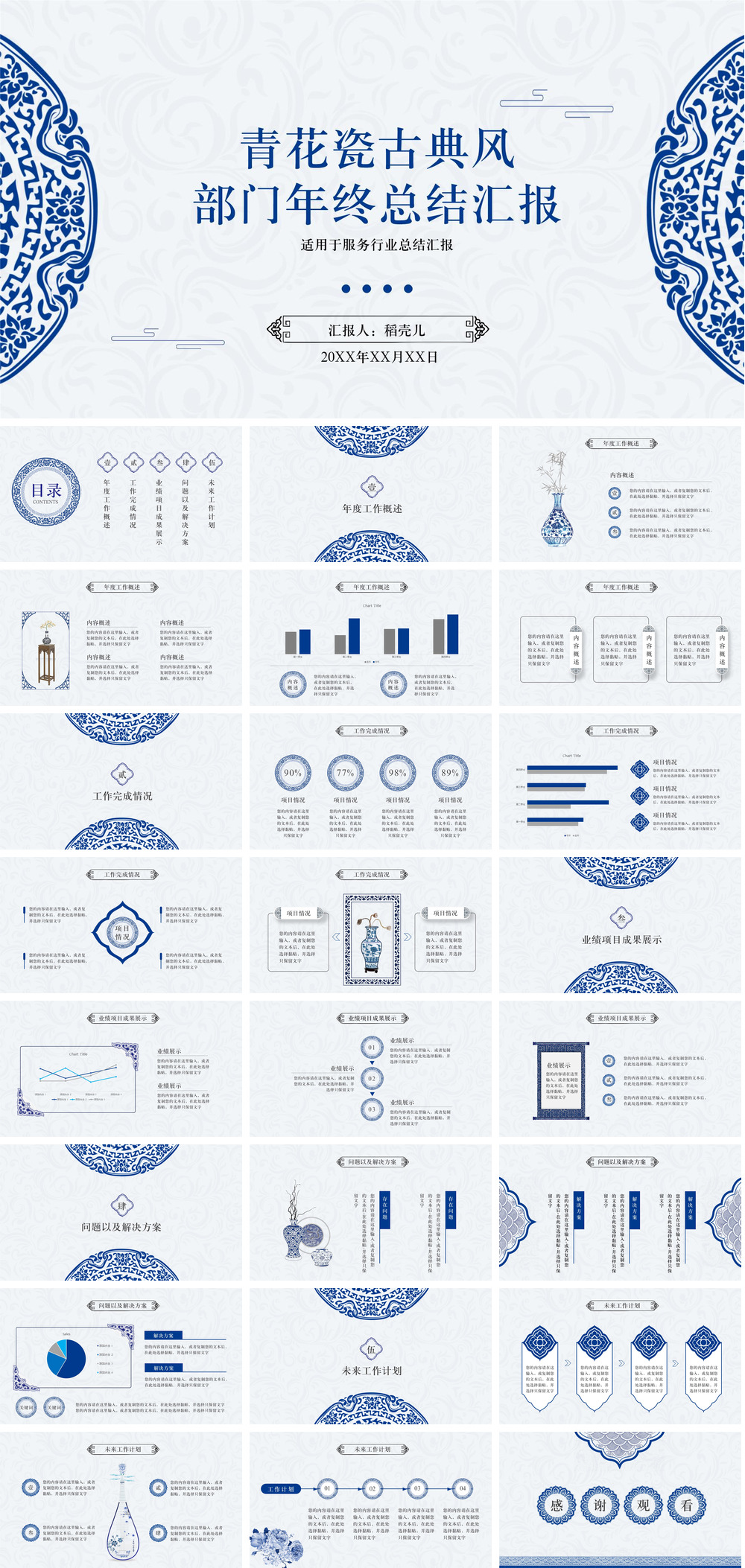 青花瓷古典风服务行业部门年终总结.pptx