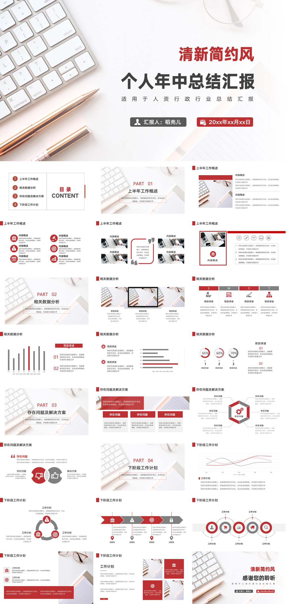 清新简约风人资行政个人年中总结.pptx