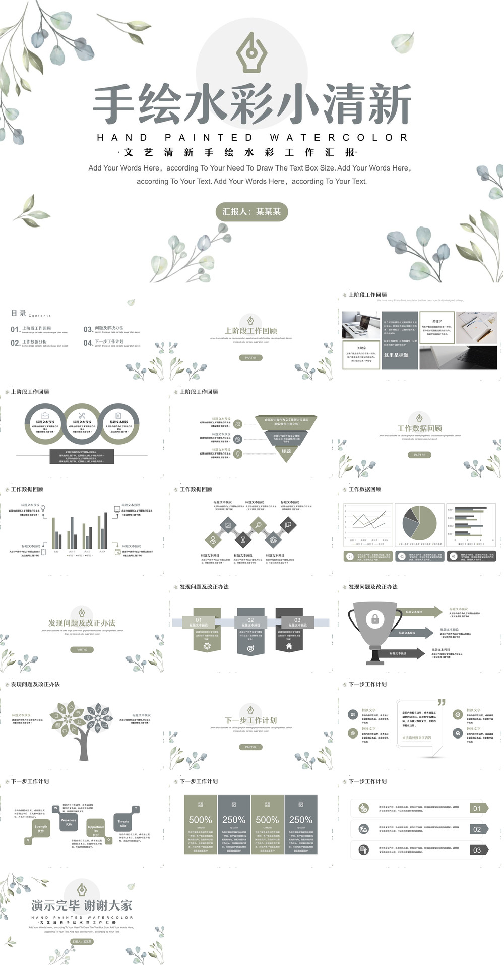 小清新水彩工作汇报模板.pptx