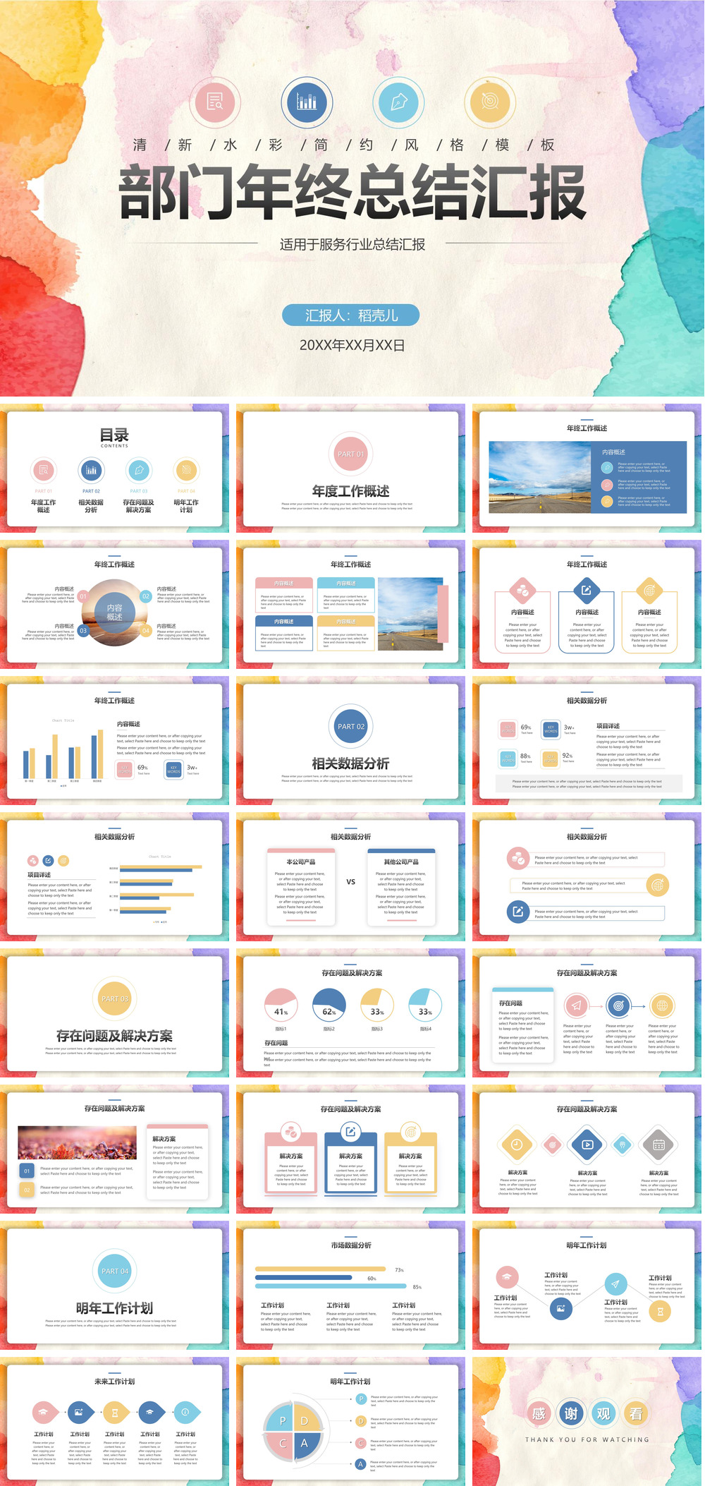 水彩简约服务行业部门年终总结.pptx