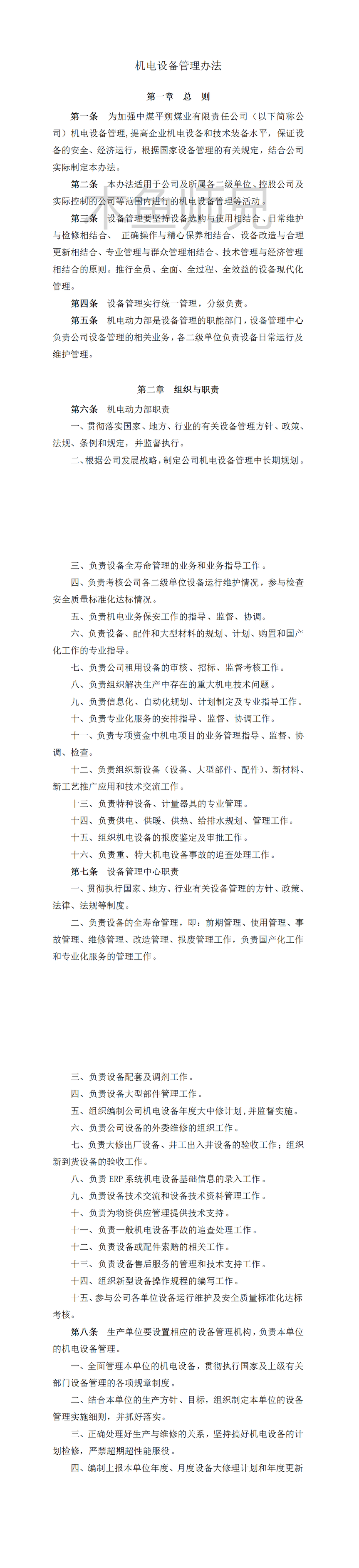 合集:机械生产资料机电工作指标施工制度设备-SB01-设备管理办法