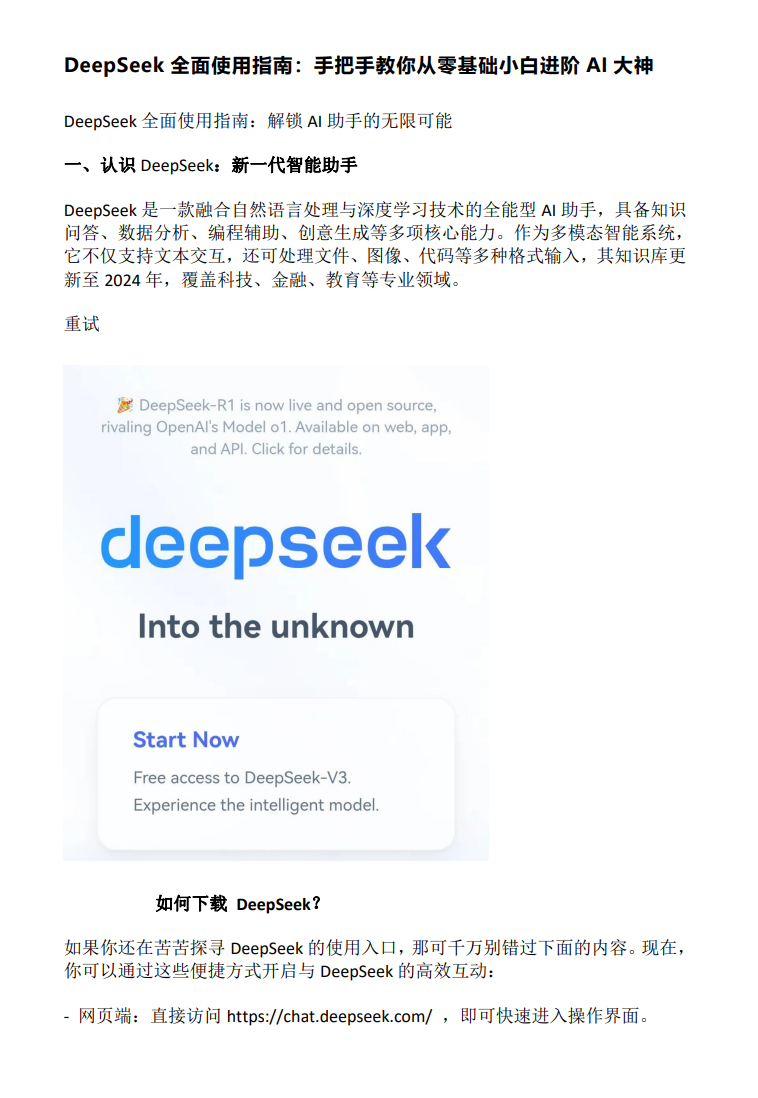 DeepSeek全面使用指南:手把手教你从零基础小白进阶AI大神.pdf