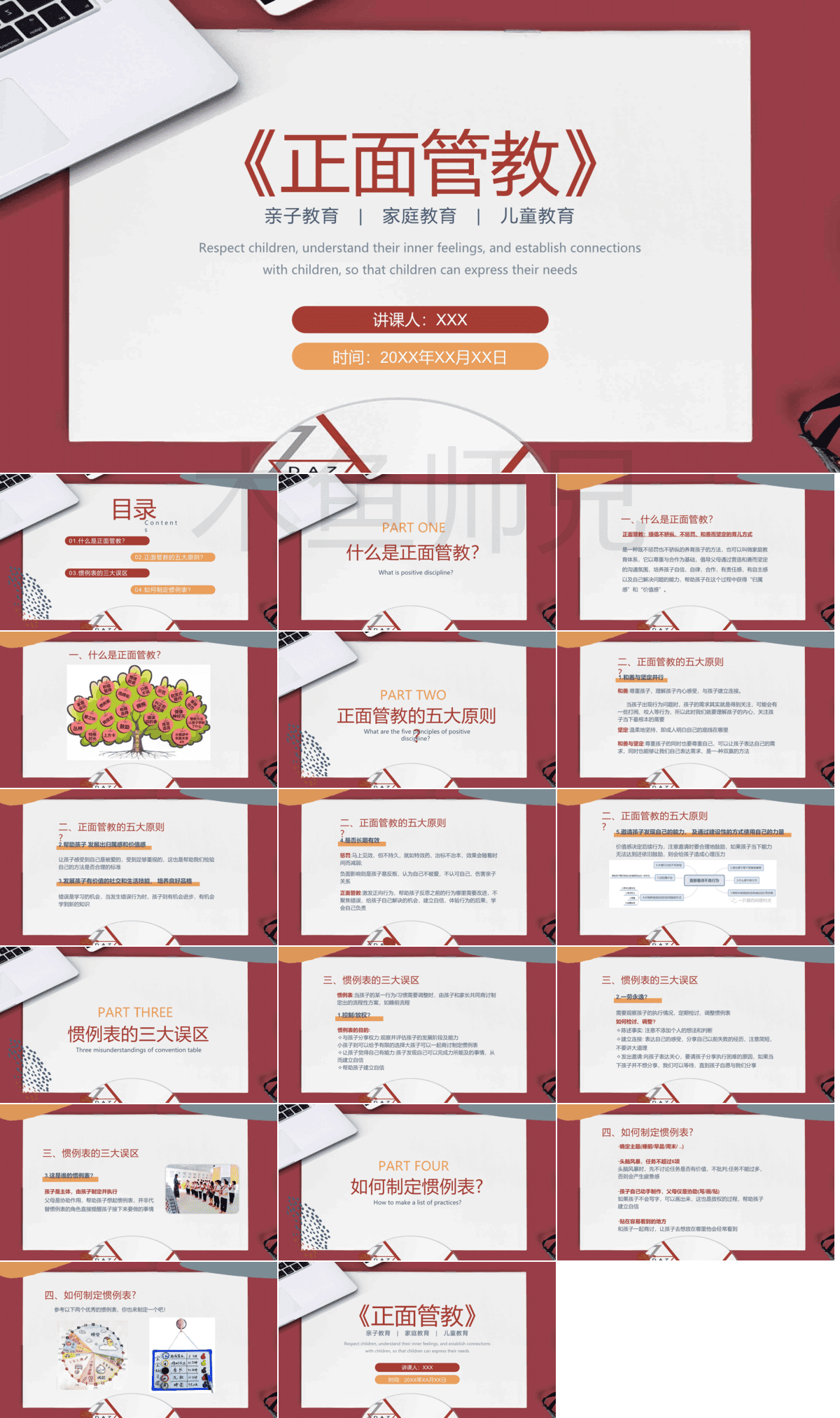 合集:中小学生正面管教PPT模板读书阅读分享会幼儿园家庭教育讲座课件