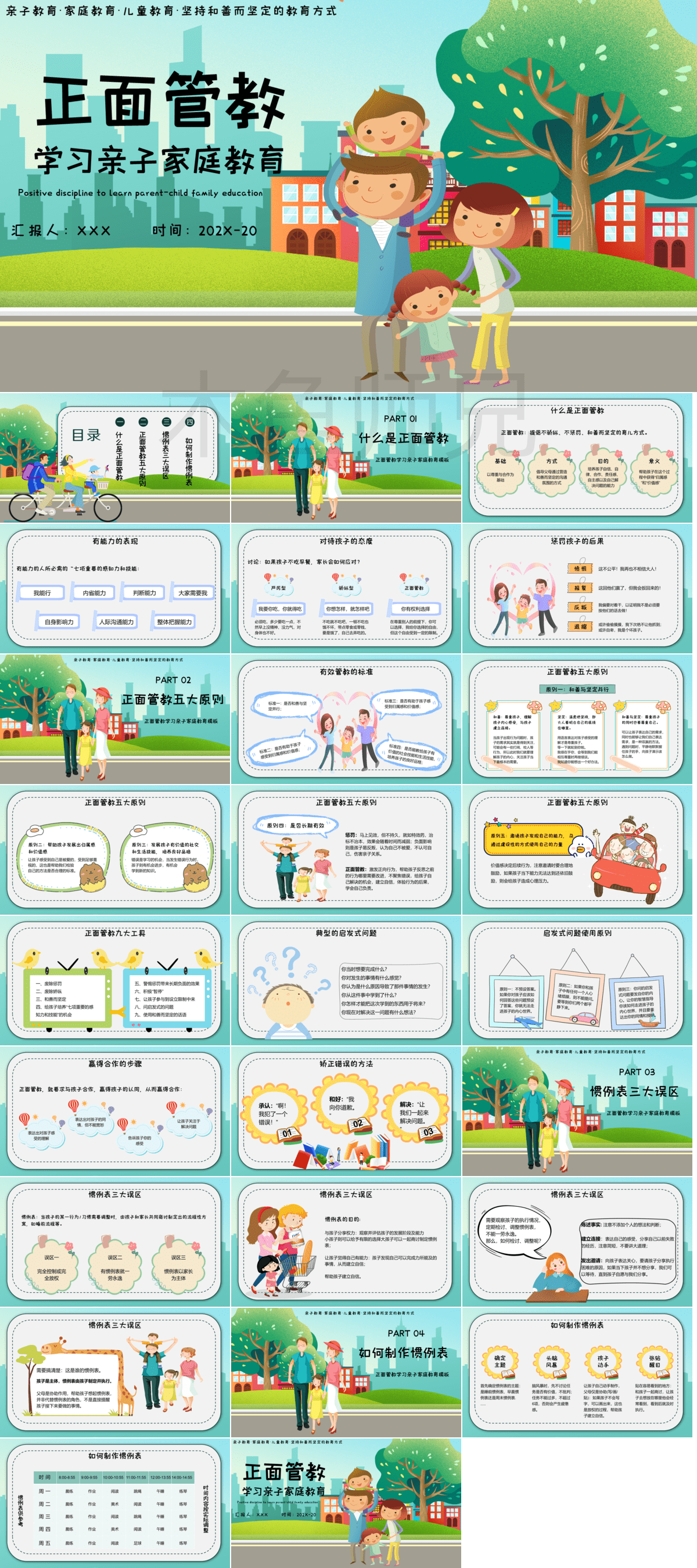 合集:中小学生正面管教PPT模板读书阅读分享会幼儿园家庭教育讲座课件