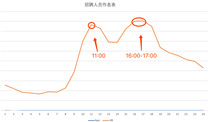 下面通过曲线图的形式来展示拉勾网 HR 的工作作息表: