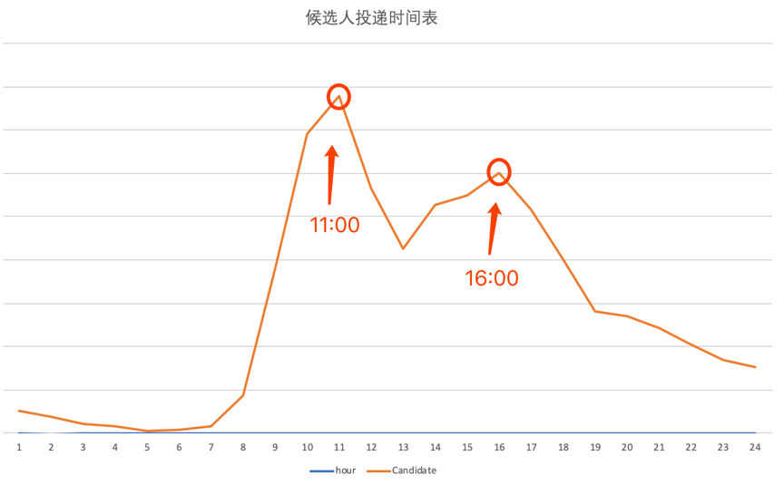 下面通过曲线图的形式来展示候选人投递简历的时间表: