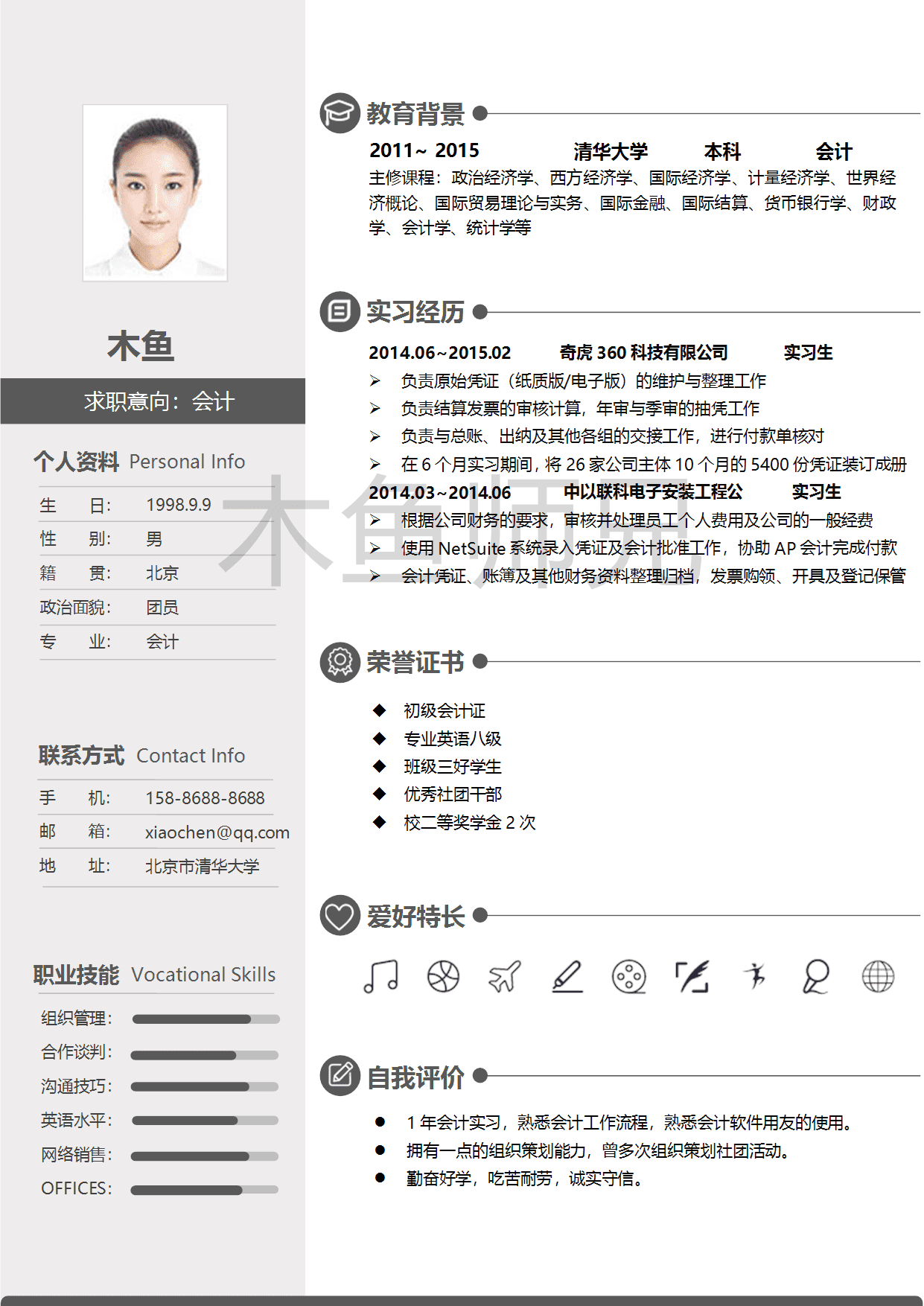 稳重大气个人简历模板
