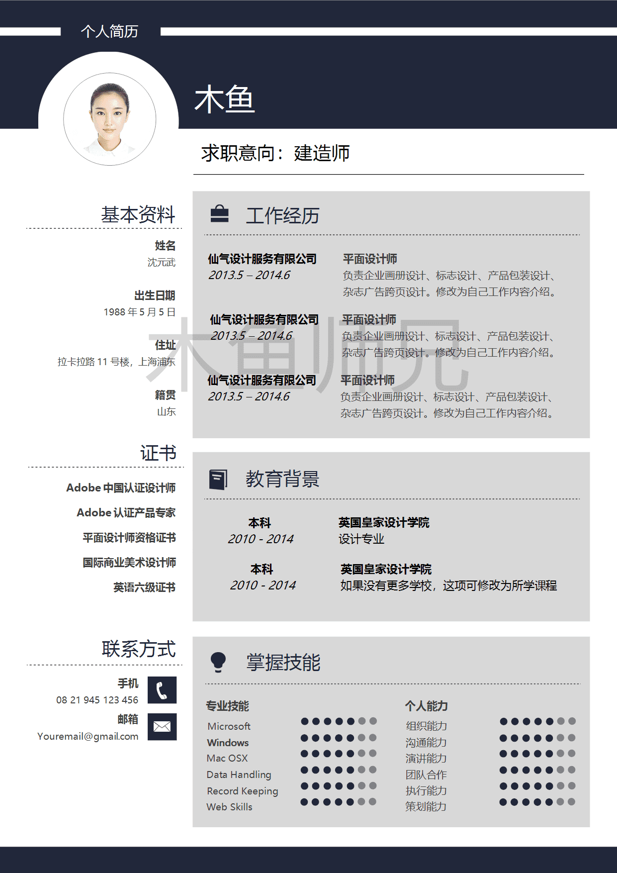 [500套个人简历]单页个人简历.2.稳重大气25套