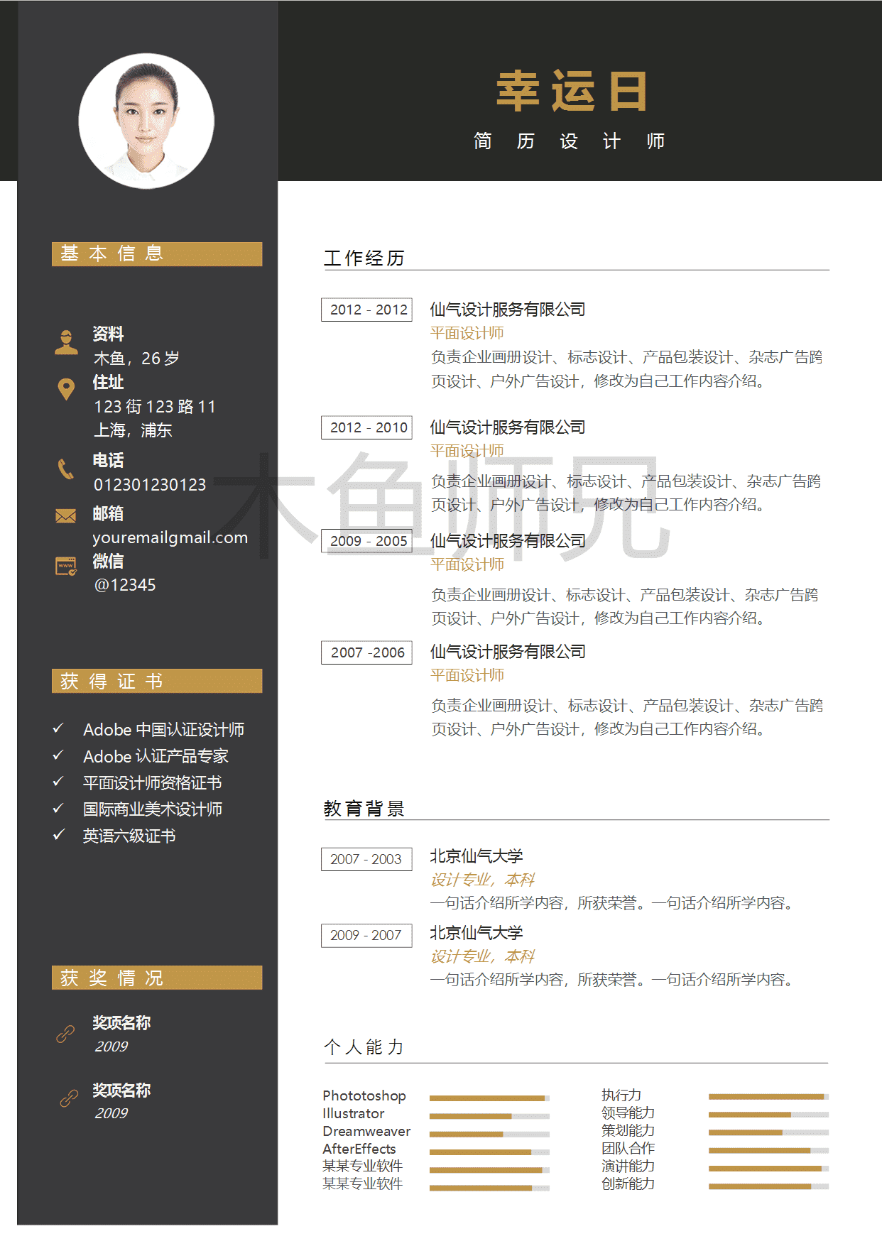 [500套个人简历]单页个人简历.2.稳重大气25套