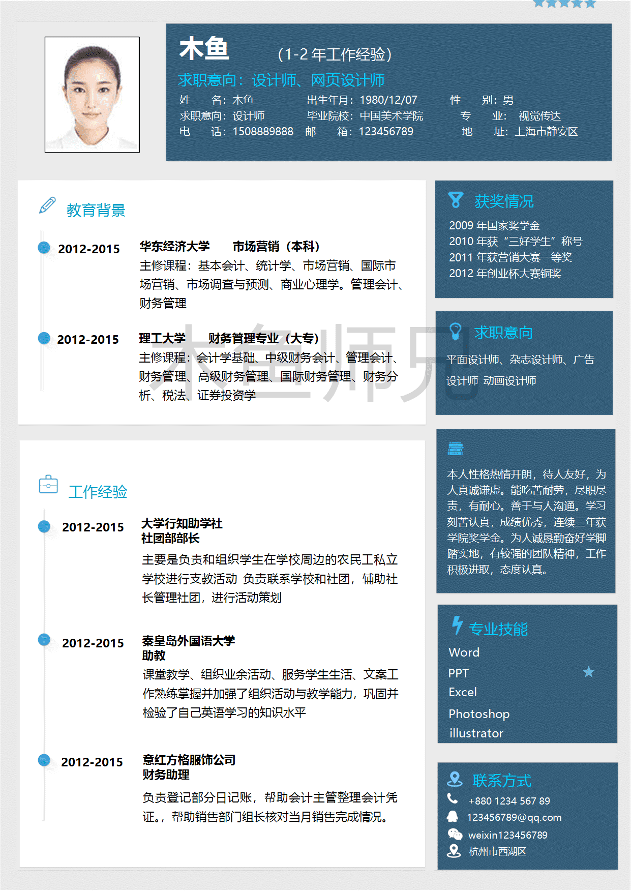 [500套个人简历]单页个人简历.2.稳重大气25套