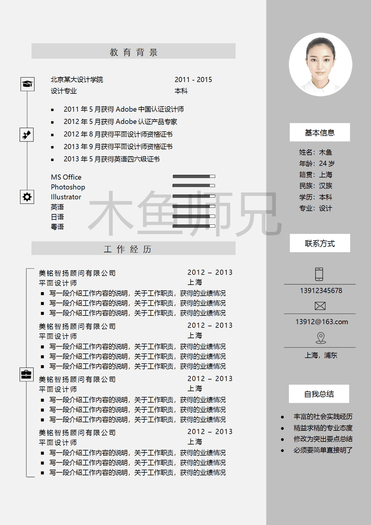时尚简约个人简历模板