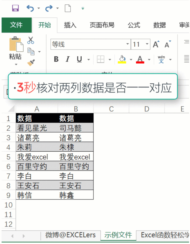 | 19 | 018-快捷键-3秒核对两列数据是否一一对应相等.GIF | 揍我 | 快捷键 | 3秒核对两列数据是否一一对应相等 |